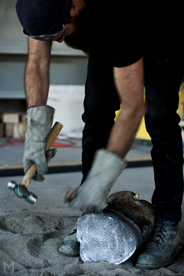 Terren took some photos of me unwrapping the pine round after the metal was poured. way better than the usual photos i post on here.